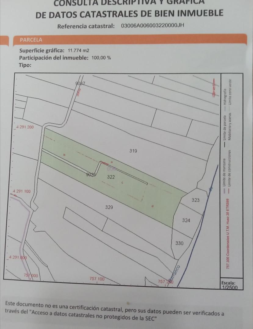 La parcela con sus 11.874 M2 de superficie obtiene la condición de poder ser edificable, ya que la parcela mínima en esta zona rústica es de 10.000 m2. con una ocupación de un 2% de la superficie total de la parcela. Su situación y orientación es factible para la colocación de un sistema solar de electricidad.