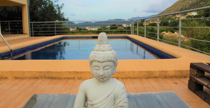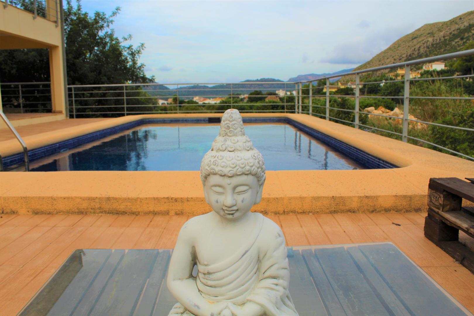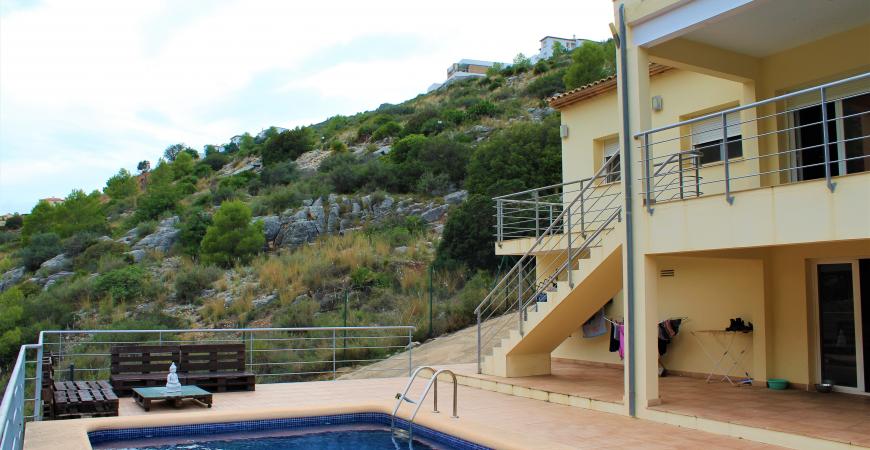 Casa principal: 3 dormitorios, 2 baños, salón comedor con estufa de leña, cocina equipada con comedor, aire acondicionado (calor y frio), radiadores electricas, terraza cubierta. Planta baja: salón comedor con estufa de leña, cocina y baño. Piscina privada de 8x4m, parking, parcela vallada.